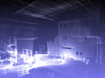 Point cloud of an industrial high-bay built from laser data and visual-inertial path data