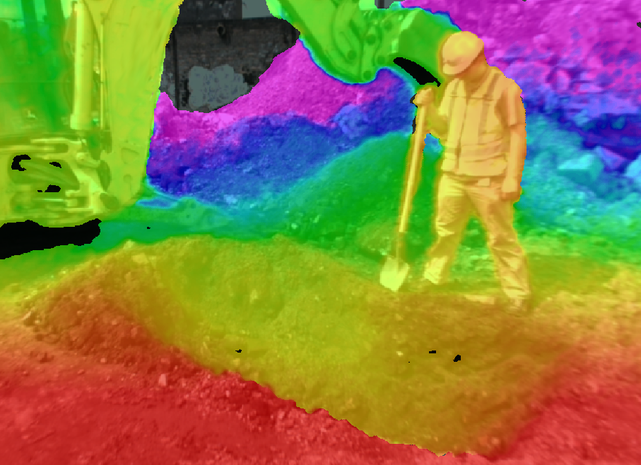 Depth information visualized as false color on top the left image