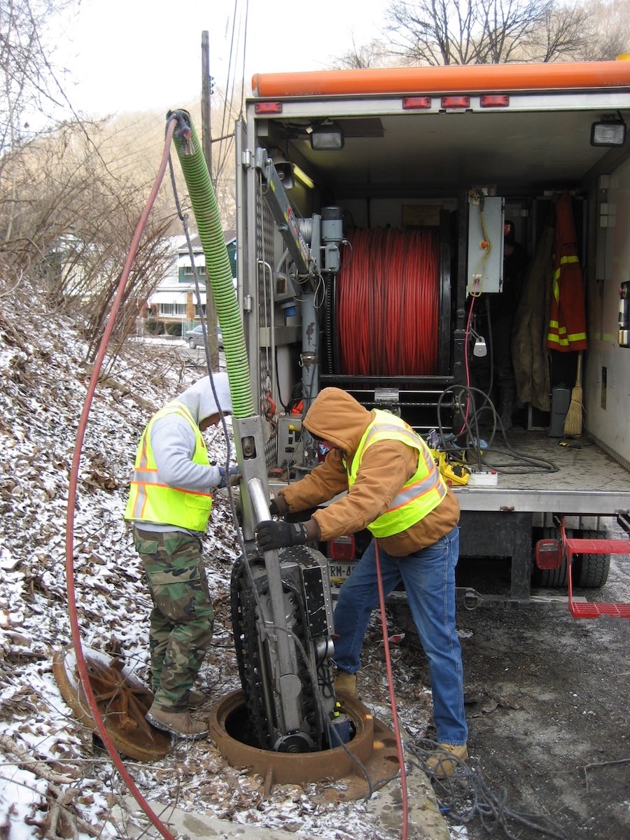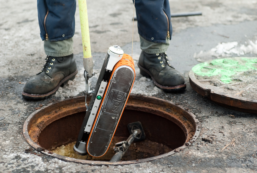 Solo being lowered into a residential sewer