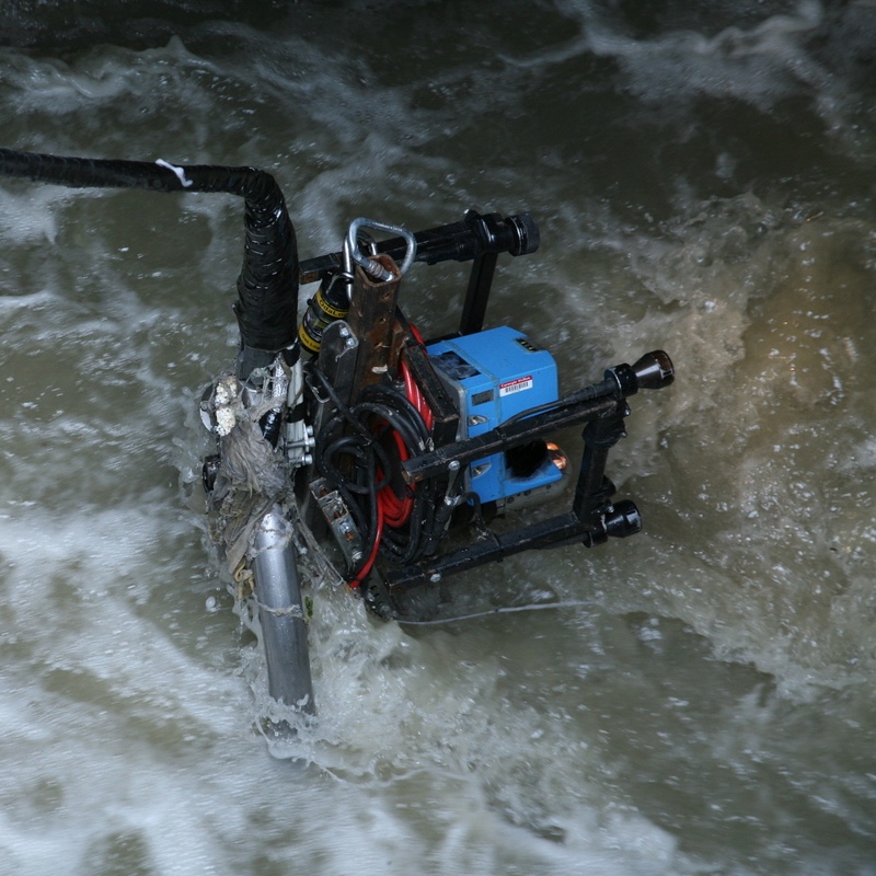 Responder in 4 feet of flow, 3D laser above the water line will create 3D models of the pipe surface (see below)